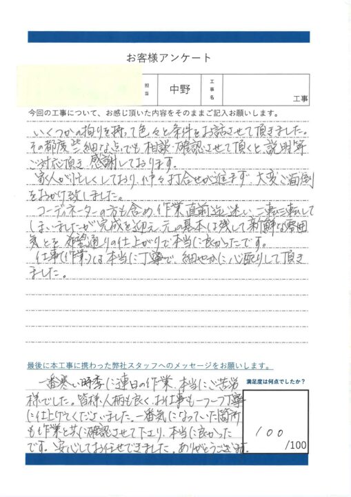 仕事(作業)は本当に丁寧で細やかに心配りして頂きました。