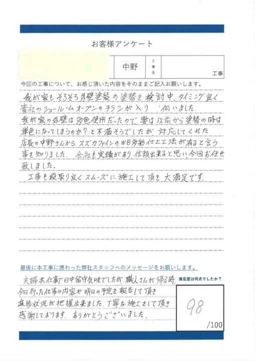 会社も実績があり、信頼出来ると思い今回お任せ致しました。